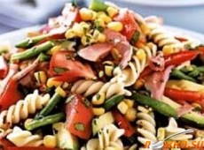 Салат из ломтиков говядины, репы и моркови с творожным сыром