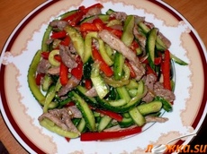 Салат из нектаринов и свинины на гриле, шпината и феты