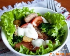 Салат из мяса, овощей и моцареллы с соусом чимичурри