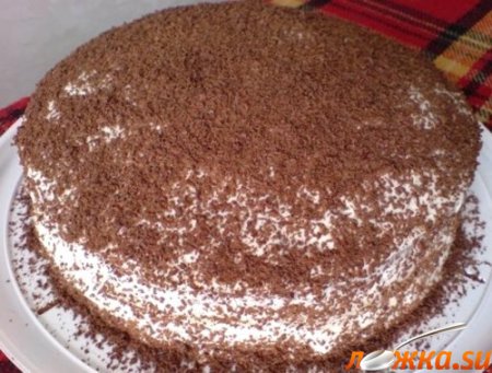 Готовый бисквит остудить, разрезать вдоль пополам, смазать кремом и обмазать им тортик снаружи. Оставить пропитываться в холодильнике 1-2 часа.