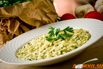 В сотейнике растопить половину сливочного масла. Добавить мелко нарезанный лук и готовить до прозрачности. Добавить в сотейник рис, перемешать и хорошо прогреть. Довести до кипения вино вместе с бульоном, уменьшить огонь до минимума. Добавить в рис полстакана бульона, дать полностью впитаться, постоянно помешивая. Влить столько бульона, чтобы его была в два раза больше, чем риса. Посолить и поперчить. Увеличить огонь, накрыть крышкой и тушить, периодически помешивая. При необходимости вливать горячий бульон. Перед подачей положить сливочное масло и тертый сыр, перемешать и разложить по тарелкам.