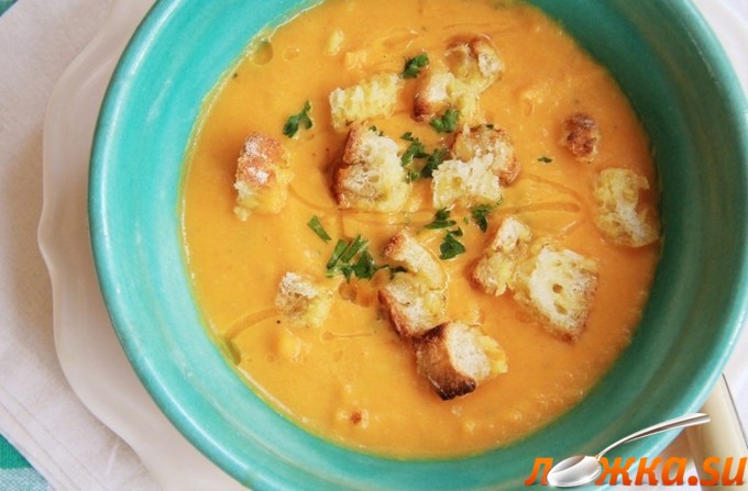 Сперва тыкву очищаем от середины и шкурки, нарезаем кубиками и отправляем в бульон вместе с одним зубчиком чеснока. Затем доводим до кипения и продолжаем варить на маленьком огне до мягкости тыквы. На сковороде на оливковом масле обжариваем не сильно мелко нарезанный лук и порезанные кружками сосиски. В отдельной кастрюле варим рис на медленном огне. Сваренную тыкву и чеснок вылавливаем из бульона и разбиваем блендером в пюре. Его обратно отправляем в бульон, туда же кладем обжаренный лук с сосисками и проваренный рис. Добавляем все специи, доводим до кипения, провариваем еще примерно 10 минут. В конце готовки вводим в суп сливки.