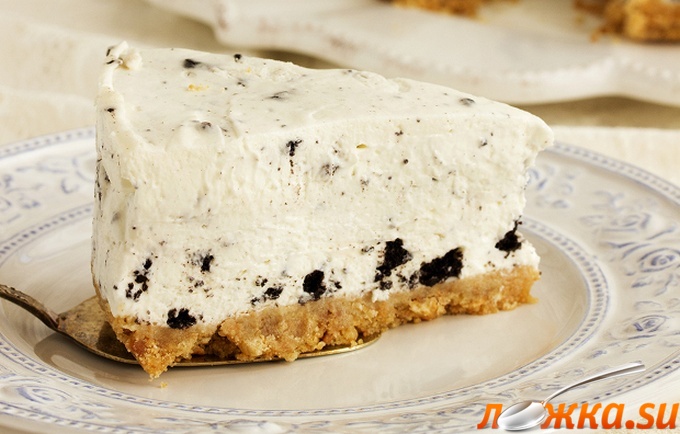 Основа: измельчите печенье в крошку. Масло растопите и смешайте все вместе. Утрамбуйте на дно формы. Начинка: смешайте сливочный сыр и маскарпоне. Добавьте сахар и ваниль. Взбейте сливки и введите в сырную массу. Затем аккуратно вмешайте измельченное печенье. Вылейте начинку на подготовленную основу. Поместите в холодильник минимум на 6 часов.
