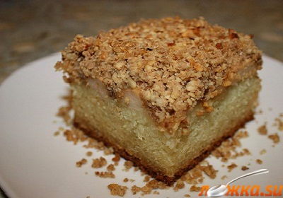 Взбить вместе сахар, сливочное масло и яйца. Затем прибавить муку все хорошо смешать. Добавить ванилин, кто любит нарезать кисло сладких яблок, очистить их от кожицы и сердцевины. На раскаленную сковороду или противень налить немного растительного масла, сверху насыпать тонкий слой панировочных сухарей. Положить на сухари нарезанные яблоки, залить их приготовленной массой. Сверху посыпать мелко нарезанные грецкие орехи и запекать в течении 40 минут.