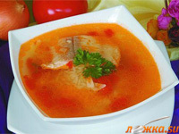 Положить в каждую тарелку рыбу и рис, украсить суп листиками петрушки.
