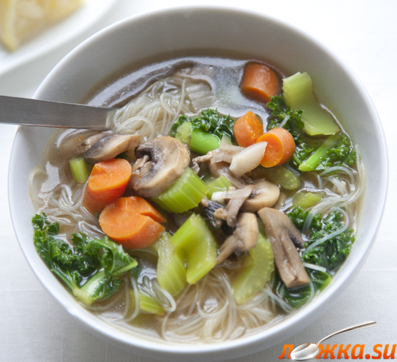 Порезать картофель и цветную капусту, залить кипятком, всыпать поломанные спагетти. Через 3–5 минут добавить порезанный кубиками кабачок и нашинкованную капусту.