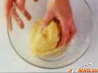 Марципановую массу скатываем в небольшой шар, слегка посыпаем его сахарной пудрой и вымешиваем вручную, пока марципан не станет пластичным и однородным.