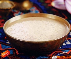 Простоквашу смешиваем со сметаной, вливаем в отдельную кастрюлю и прогреваем около 10 минут на слабом огне, постоянно помешивая. Затем добавляем мясной бульон и перемешиваем.