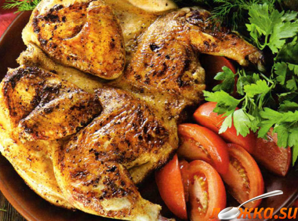 4. Смешиваем оставшийся чеснок с соком лимона и сбрызгиваем цыплят.