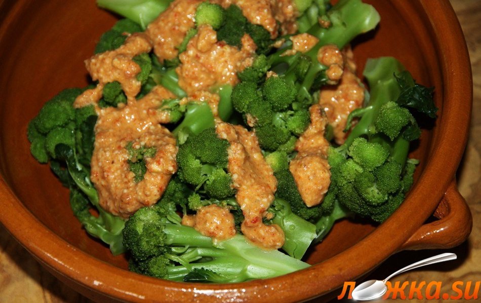 Брокколи разберите на соцветия и отварите в кипящей подсоленной воде в течение 3-4 минут. Воду слейте, а брокколи обдайте ледяной водой.