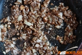 Растопите 3 ст. ложки масла в той же сковороде. Добавьте лук и чеснок, приправьте солью. Обжарьте до мягкости и добавьте тертый имбирь и гарам масала, перемешайте.