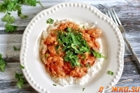 Подавайте с отварным рисом, посыпав кинзой. Приятного аппетита!