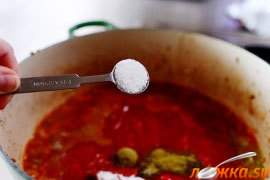 11. Хорошенько перемешав, убедимся в том что наш соус стал густым и добавим "секретный ингредиент" - итальянский соус «Маринара».