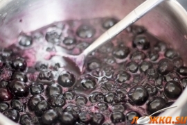 Чернику поместите в кастрюлю, добавьте 3 ст. ложки воды и доведите до кипения. Готовьте, пока ягоды не размягчатся, около 12-15 минут. Тем временем взбейте яйца со 100 г сахара.
