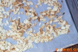 Поджарьте в духовке миндаль при температуре 180 градусов около 5 минут до золотисто-коричневого цвета.