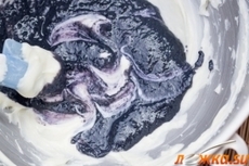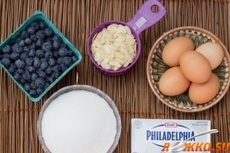 Взбейте сливочный сыр со 100 г сахара. Добавьте охлажденное пюре черники и перемешайте.