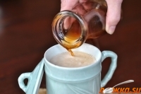 Процедите, добавьте коричневый сахар, мед и ваниль.