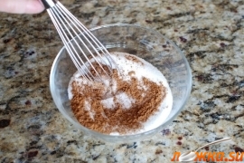 Смешайте сахар с корицей и посыпьте этой смесью яблоки. Перемешайте и отставьте в сторону, пока будете готовить тесто.