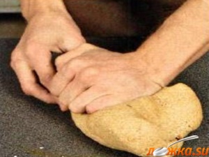 Половину теста раскатываем в пласт толщиной около 1 см. Из него вырезаем большой круг.