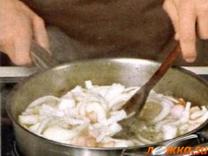 Сало нарезаем кубиками. Лук чистим и крупно нарезаем. Разогреваем сковороду и обжариваем сало на среднем огне 8 – 10 минут. Добавляем лук, увеличиваем огонь и готовим 6 минут, постоянно помешивая. Сковороду снимаем с огня.