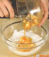 Получившейся смесью заливаем кальмаров, перемешиваем и ставим на 2 часа в холодное место.