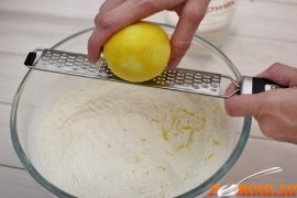 Добавьте в тесто цедру лимона. Быстро смешайте все ингредиенты резиновым шпателем.