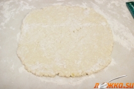 Выложите тесто на хорошо посыпанную мукой рабочую поверхность. Раскатайте тесто в форме квадрата 30х30 см.