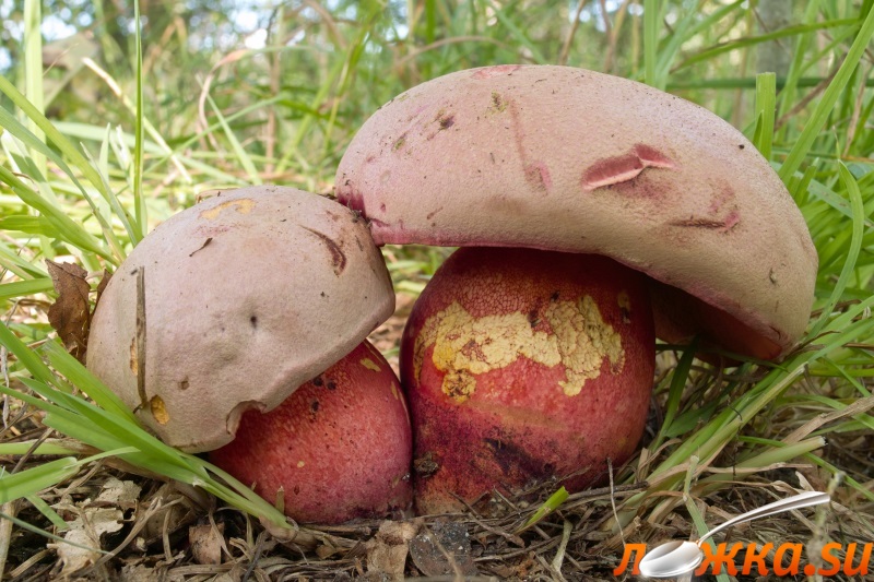 Гименофор приросший зубцом к ножке, трубчатый. Длина трубочек 1–2 см. Поры красного цвета.