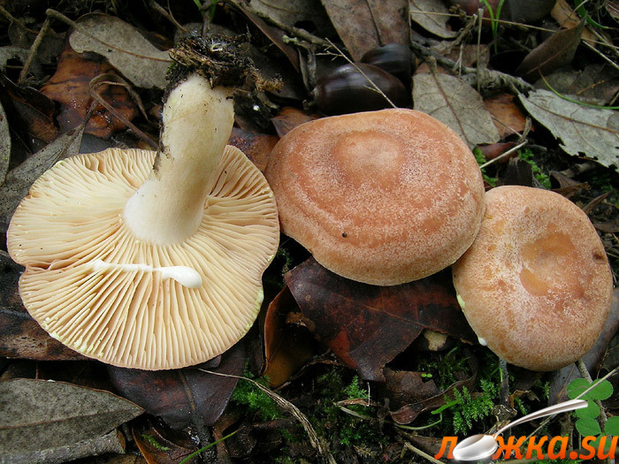 Сильно схож с несъедобным млечником Порне, отличающимся белым молочком, горьким вкусом, яблочным запахом мякоти, и встречающимся только под лиственницами.