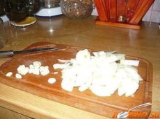 Лук и чеснок чистим, режем.