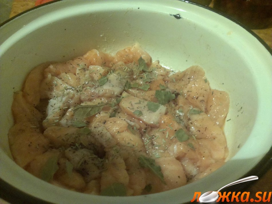 Засыпаем брюшки солью, перцем и розмарином. Лавровый лист крошим.