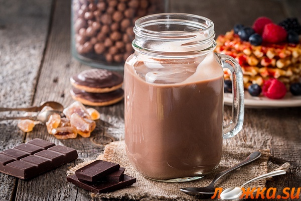 Разломайте шоколад на мелкие кусочки, залейте небольшим количеством кипящего молока и дайте растаять. Остудите. Взбейте все ингредиенты в блендере, при желании добавив горсть льда. Налейте в охлажденные высокие стаканы, посыпьте какао-порошком через ситечко и подавайте с трубочками.
