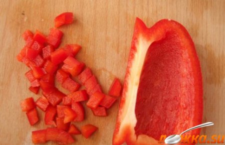 Болгарский перец режем небольшими кубиками.