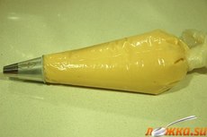 Выложить тесто в кондитерский мешок с нужной насадкой.