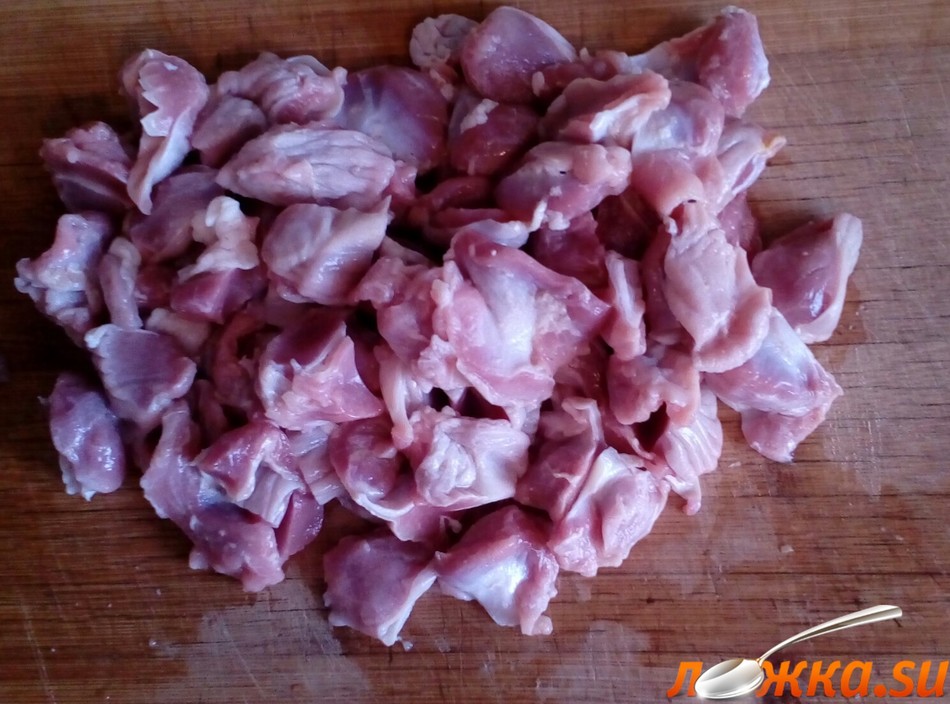 Порезать желудки на кусочки.