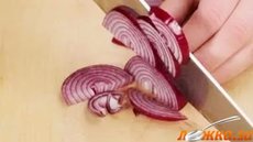 Лук режем тонкими полукольцами.