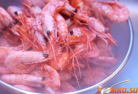 Креветки отвариваем в течении 2 минут , остужаем, очищаем.