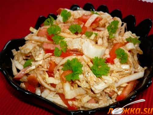 | Название: | Салат из пекинской капусты с помидором и колбасой |