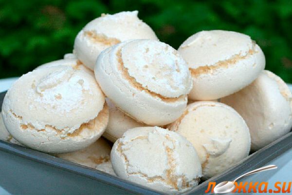 Пергаментную бумагу положить на противень. Белковую массу выложить в виде безе на противень с помощью ложки или кондитерского шприца, так получится ровнее.