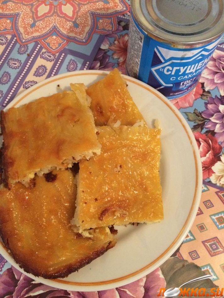 Все: вынуть из духовки,разрезать на кусочки и можно подавать со сгущёнкой или сметаной.