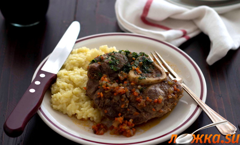 Переворачиваем хвосты, обжариваем ещё 5 минут и вынимаем. Очищенную морковь, лук и сельдерей мелко нарезаем и отправляем в масло после хвостовой части. Обжариваем около 10 минут, помешивая. Выкладываем в овощи подготовленные кусочки хвоста и добавляем томатную пасту (предварительно размешиваем в 100 мл. бульона). Вливаем остатки бульона, накрываем крышкой и тушим телячьи хвосты 2-2,5 часа на минимальном огне, пока мясо не будет отходить от костей. Через каждые 30 минут открываем и переворачиваем хвосты, по необходимости добавляем бульон. Если бульон несоленый, то в соус добавляем соль. За 10 минут до приготовления добавляем измельченную петрушку, чеснок и цедру лимона. Подаем вкуснейшие телячьи хвосты горячими с гарниром.
