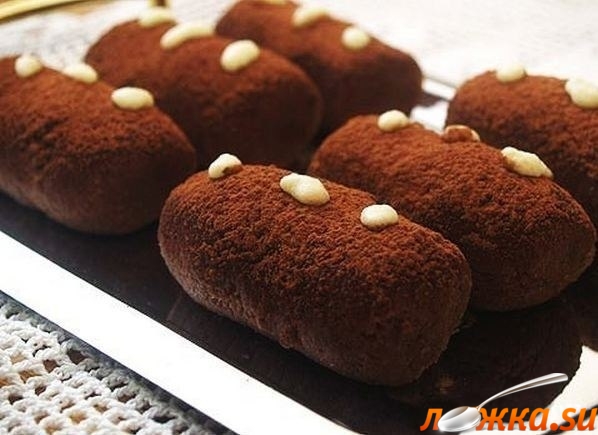 5. Готовые пирожные посыпать оставшимся какао-порошком.