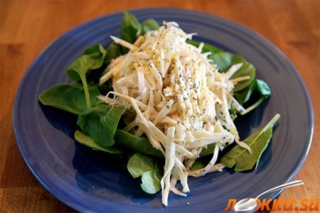 Шаг 5 Украсить салат кунжутом и шпинатом.