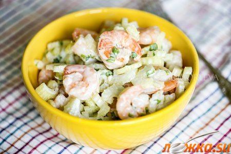 Шаг 2 Смешать сельдерей с варенными креветками.