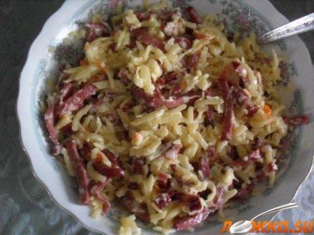 Шаг 5 Все соединить, посолить, поперчить, заправить майонезом.