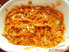 Мякоть тыквы натереть на крупной терке. Туда же натереть или нарезать мелкими кусочками сало, порезанный лук, положить приправы, которые вы любите, посолить, поперчить. Все хорошо перемешать.