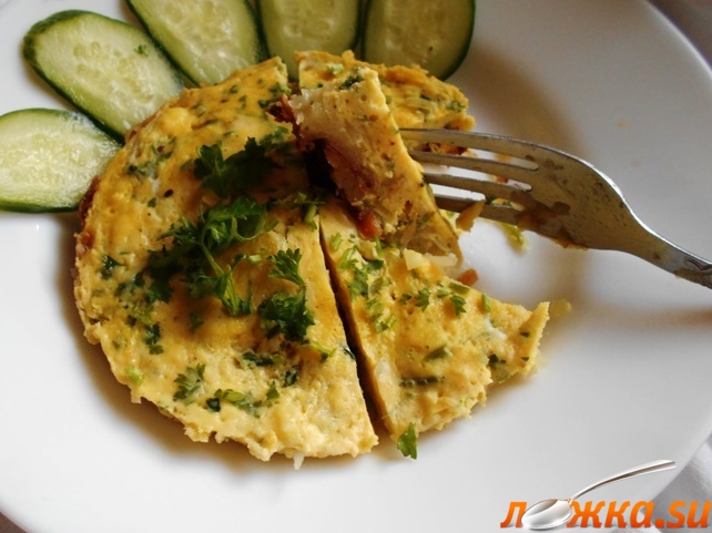 Снять запеканку на тарелку. Посыпать рубленой зеленью.
