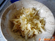 Готовим ужин на одну порцию. Картофель помыть, почистить и натереть на крупной терке.