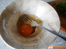 В миску вбить яйцо, всыпать ваши любимые пряности, посолить, поперчить и хорошо размешать.