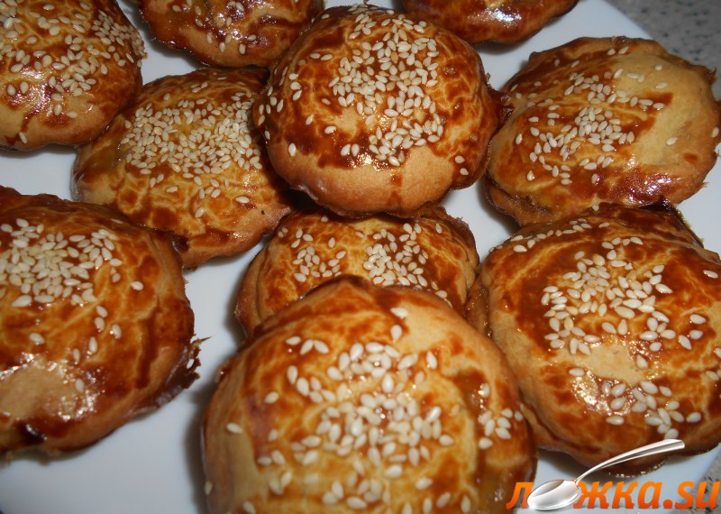 Смазать желтком. Посыпать кунжутом (маком, семенами льна и пр.) и отправить на минуту в горячую духовку.